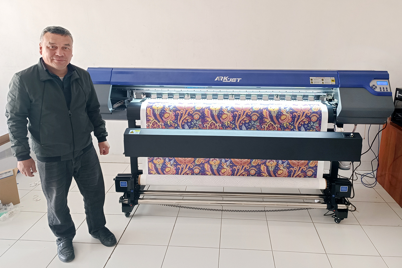 Текстильный сублимационный принтер ARK-JET SUB 1602 установлен в компании "Нигох Медиа Мобиль" из г. Коканда. Основанная в 2007 году, на рынке сублимационной печати эта компания заявила о себе относительно недавно – в 2021-м. И вот сейчас руководитель компании обратился к нам в поисках большого и надежного сублимационного принтера по доступной цене, который обеспечит качественную печать на тканях, предназначенных для производства спортивной одежды, и выбор был сделан именно в пользу ARK-JET.