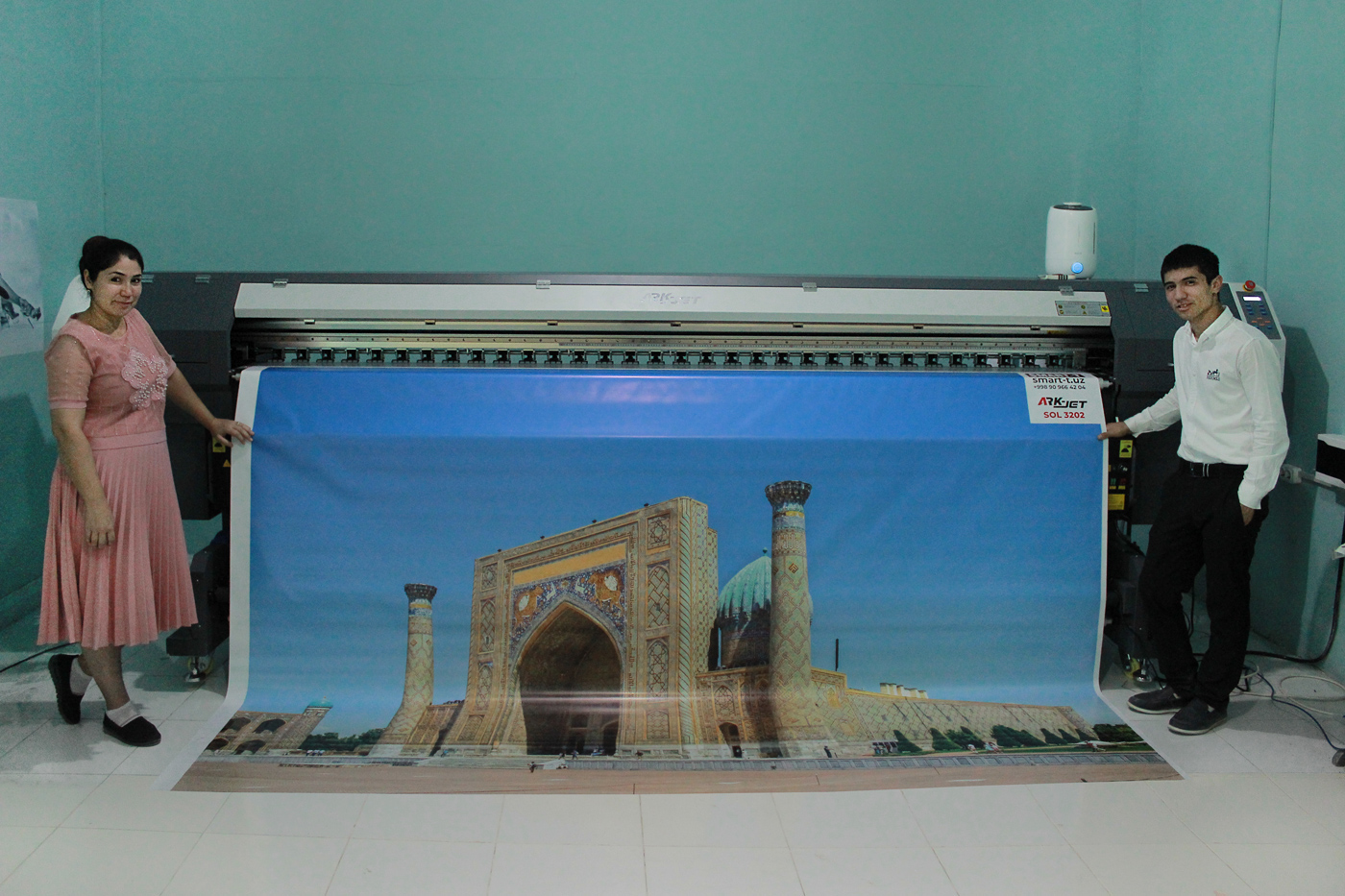 В Бухаре нашим инженером установлен трехметровый экосольвентный принтер ARK‑JET SOL 3202. Молодая и активно развивающаяся компания KOGON J-MAX PLYUS выбрала наш принтер своим основным инструментом для производства высококачественной интерьерной и наружной рекламы.