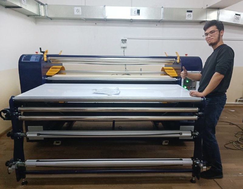 Этот каландровый термопресс HOTA 220-1700 Plus для текстильного сублимационного термопереноса стал уже девятой единицей оборудования, установленной нами в компании Alo Omad Rivoj, крупнейшем в Узбекистане производстве флажной продукции и государственной символики.