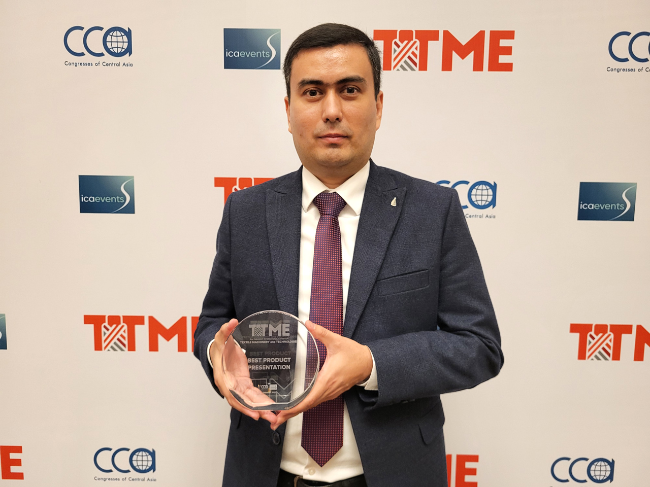 Наша экспозиция самой передовой техники для текстильной печати на выставке TTME-2023 завоевала первое место в номинации "Лучшая презентация оборудования"! Награду директору компании SMART-T Нодирбеку Джураеву вручает руководитель выставки Юлия Евстифеева.