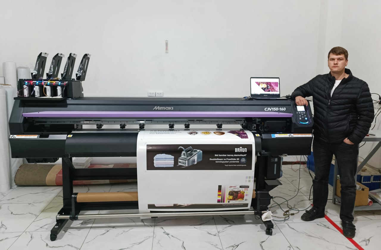 Экосольвентный японский принтер Mimaki CJV150 продолжает пользоваться стабильно высоким спросом у профессиональных рекламщиков Узбекистана. На днях наш инженер запустил очередную модель с шириной печати 160 см.