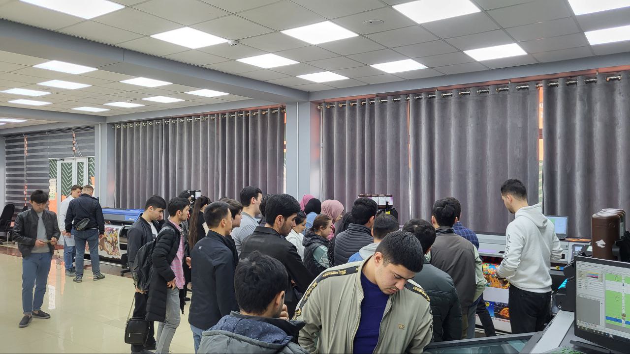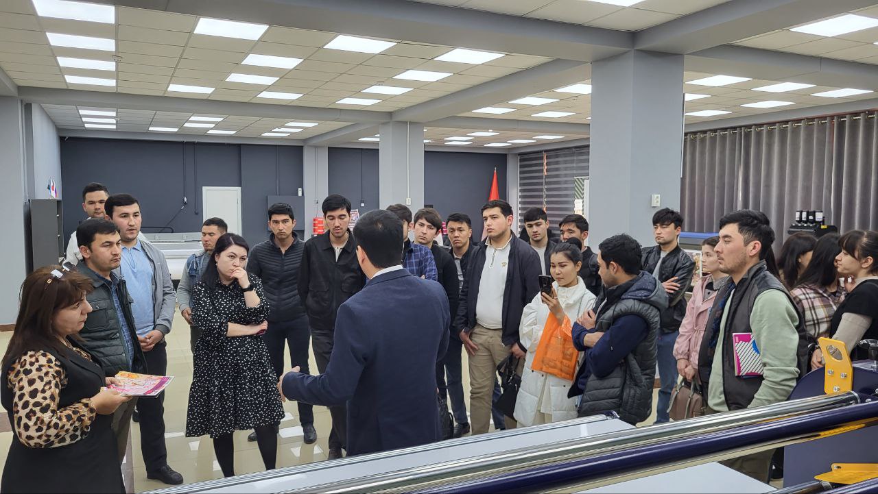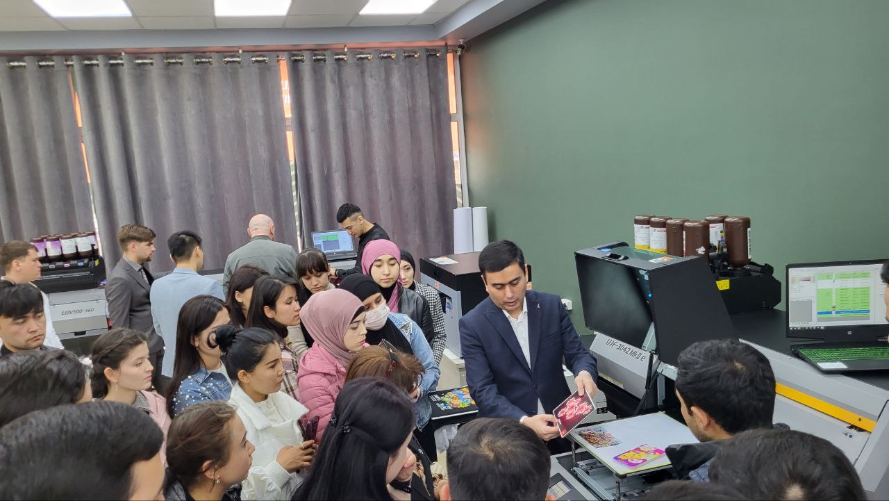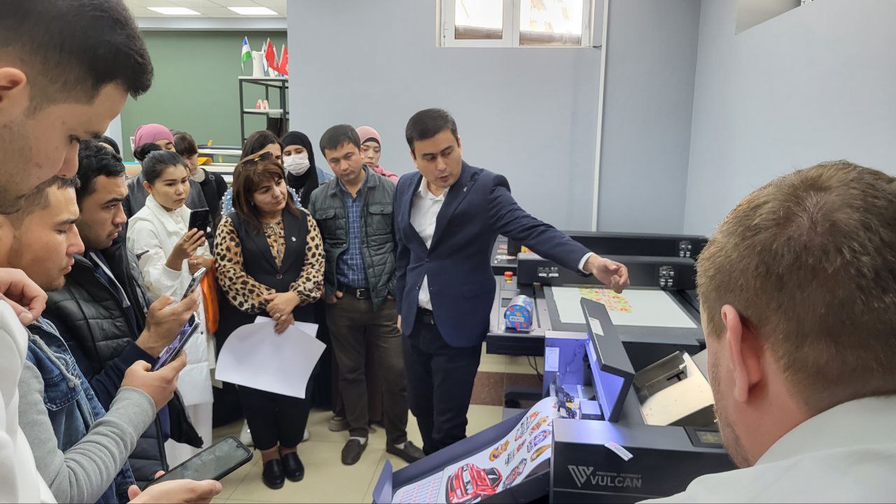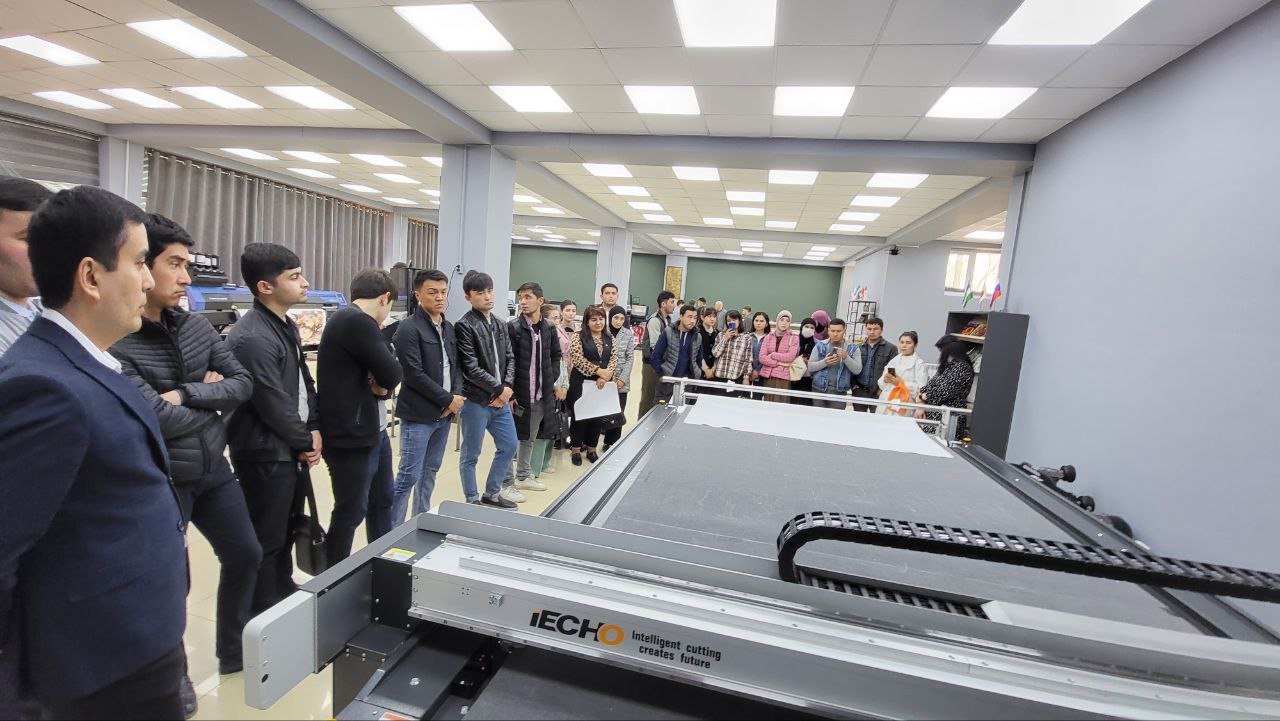 Среди гостей нашей выставки была представительная делегация из Ташкентского института текстильной и легкой промышленности. Руководство ВУЗа и учащиеся факультета полиграфии держат руку на пульсе, отслеживая современные технологии печати и раскроя. Ознакомиться с ними на практике позволяет обширная экспозиция нашего шоурума.