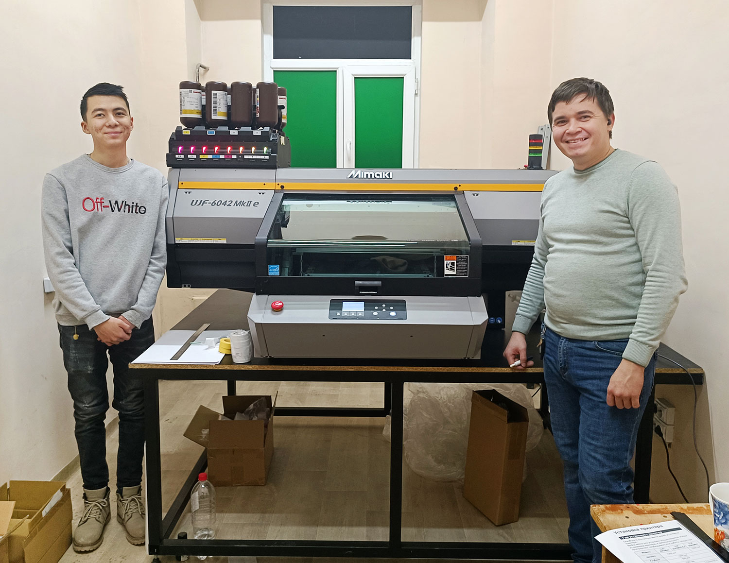 Очередной принтер Mimaki установил наш специалист в многопрофильной рекламной компании Easy pro solutions из Ташкента. Некоторое время назад мы установили здесь рулонный УФ-принтер Mimaki UJV100-160 и раскройный комплекс iECHO BK3-2517, которые уже стали незаменимыми помощниками в производстве наружной и интерьерной рекламы, различной полиграфической продукции и упаковки. Планшетный УФ-принтер Mimaki UJF‑6042 MkII последнего поколения был приобретен для производства сувениров, бизнес-подарков и наградной продукции.