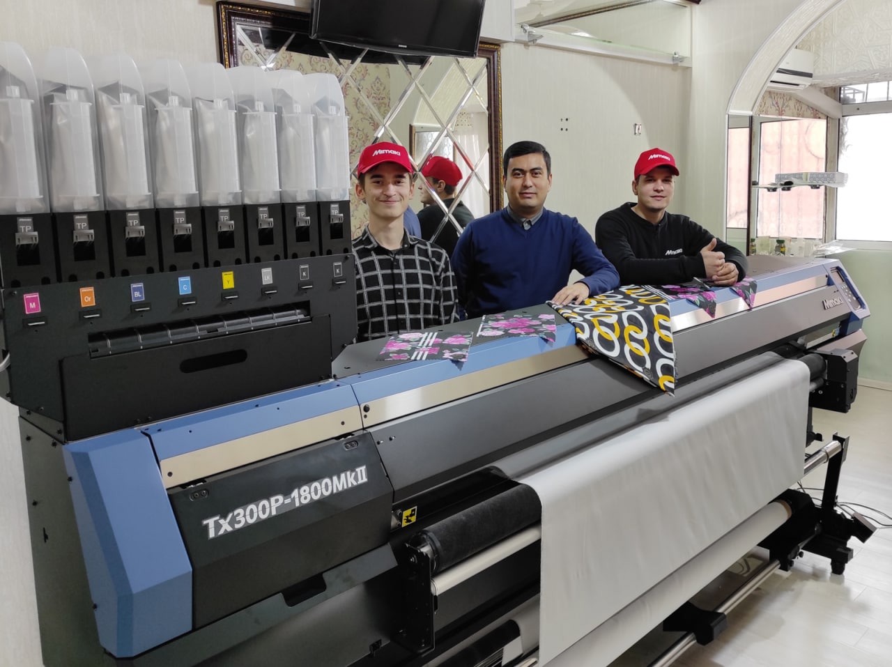 Для печати на натуральных тканях Фарход Аскарович выбрал принтер Mimaki Tx300P-1800 MkII - абсолютного и недостижимого лидера в Европе и России по количеству инсталляций. Стоит отметить, что в России на рынке пигментной печати эта модель занимает около 95% рынка, тотальное доминирование! Для печати на синтетическом текстиле наш партнер выбрал скоростной сублимационный принтер Mimaki TS300P-1800, который является самым доступным, но в то же время самым высокотехнологичным и производительным оборудованием на рынке цифровой текстильной печати. Под стать таким современным принтерам нужен и соответствующий термопресс для термофиксации и термопереноса отпечатанных изображений. Промышленная модель TitanJet RTX34 с маслонаполненным барабаном просто идеально подходит для этих задач. Этот индустриальный каландр способен обслуживать сразу несколько принтеров, обеспечивая безупречное качество итоговых отпечатков.