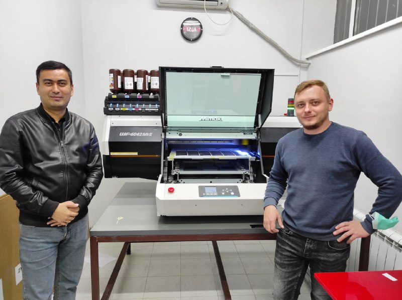 Топовый настольный УФ-принтер Mimaki UJF-6042 MkII запущен нашими инженерами в РПК "IZBA", крупном рекламном предприятии, работающем на рынке Узбекистана уже много лет. Этот высококлассный принтер стал вторым в стране UJF-6042 MkII. Первый экземпляр мы поставили в прошлом году в Ташкентском монетном дворе, входящем в структуру Государственного объединения "Давлат белгиси".