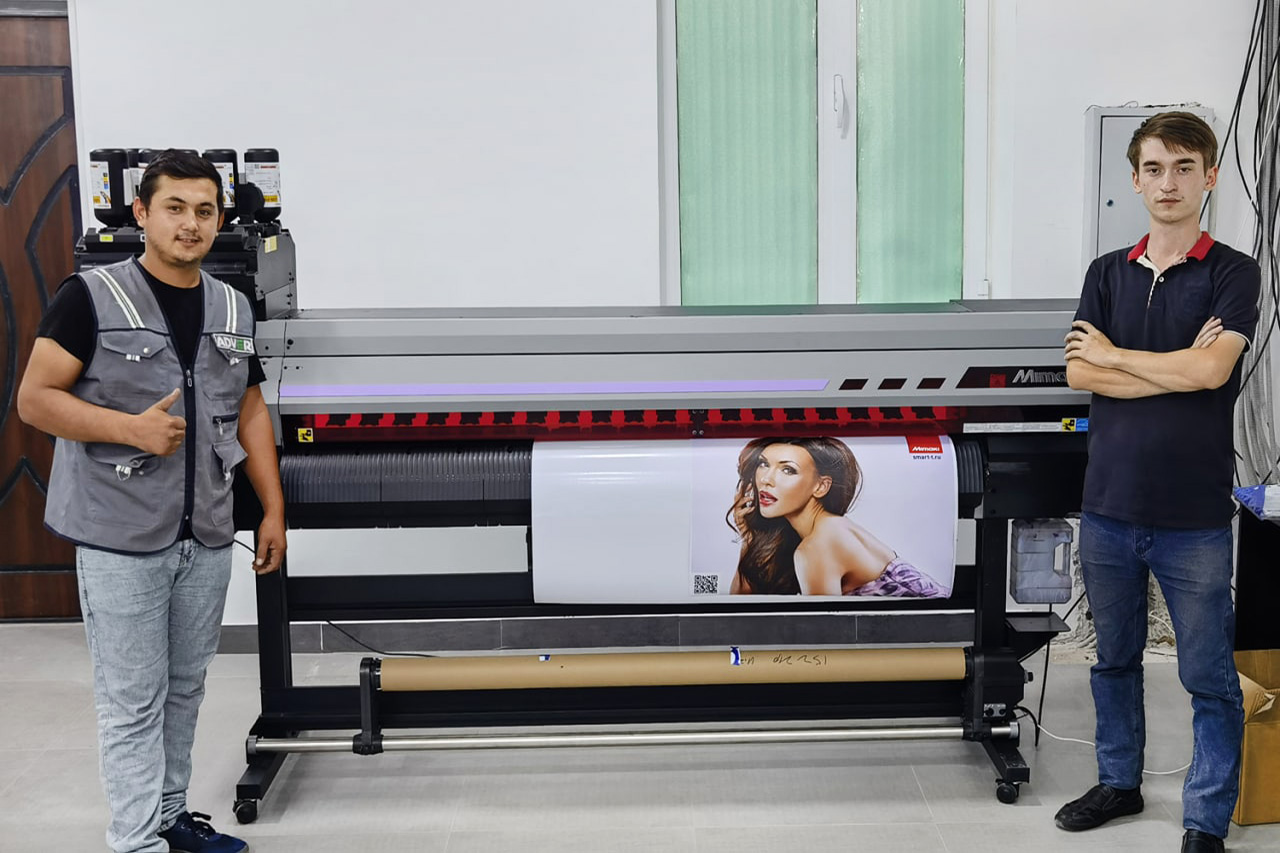 В этот раз инсталляция состоялась в компании ADVER из г. Навои. До сегодняшнего дня здесь работали два китайских экосольвентных принтера. Второй, купленный несколько месяцев назад, недавно вышел из строя на неопределенный срок - проблема отсутствия запчастей и сервиса у китайской техники никуда не делась. Устав от передряг с "серыми" принтерами руководство РПК приняло решение перейти на профессиональное оборудование.