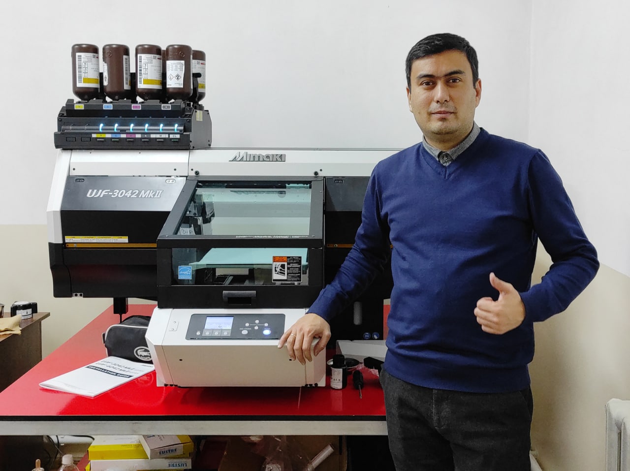 Для предоставления максимально полного спектра услуг для своих клиентов господин Кадиров принял решение об активном развитии сувенирного направления. То, что самым надежным и экономически выгодным инструментом для этого является японский УФ-принтер Mimaki UJF-3042 MkII, давно известно каждому рекламщику. А уж статистика запусков этих принтеров в Узбекистане лишь подтверждает эту истину!