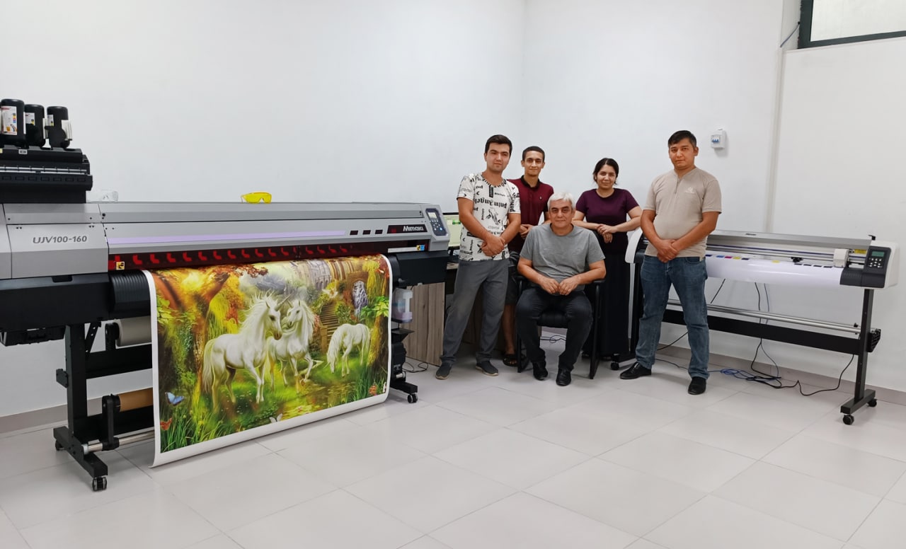 На днях наши инженеры дали старт новому рекламному производству в Ташкенте. Эта семейная компания изначально решила сделать ставку на премиальное качество своей продукции, не забывая при этом про экономическую эффективность и стабильность своего бизнеса. Поэтому при выборе новой техники было уделено серьезное внимание сразу нескольким факторам: способность делать отпечатки, недосягаемые по качеству и характеристикам для сольвентных принтеров; авторитет производителя и надежность его техники при длительной многолетней работе; наличие полноценной сервисной службы в Узбекистане.
