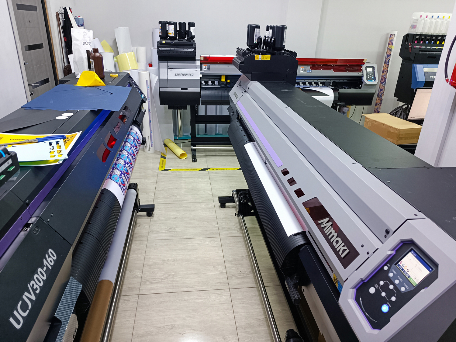 На днях внушительный парк печатной техники и оборудования для постпечатной обработки пополнил широкоформатный УФ-принтер Mimaki UJV100. Он стал уже вторым представителем этой модели и 15-м (!) станком, установленным нашей компанией на этом производстве.