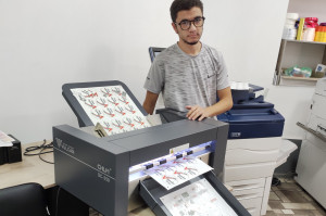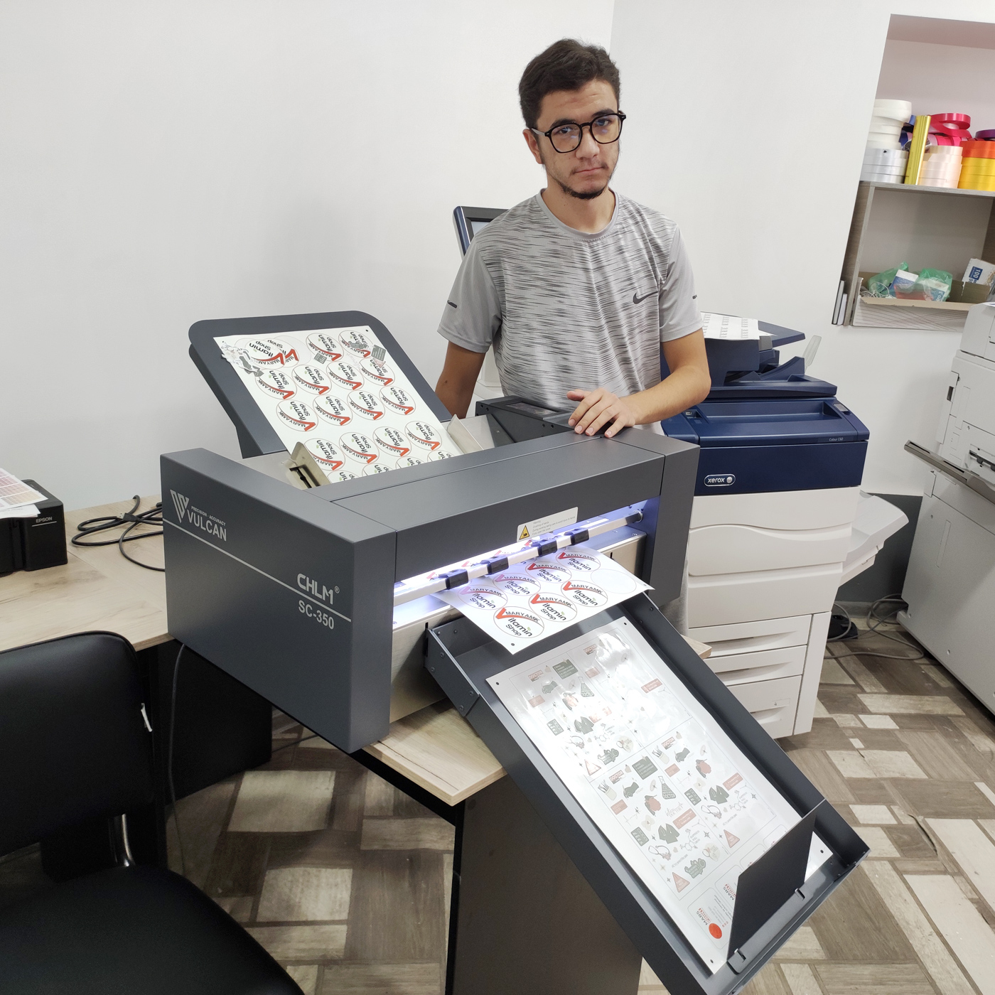 На этой неделе типография пополнилась еще одним представителем бренда VULCAN. Им стал компактный режущий плоттер SC-350. Эта скоростная машина с листовой автоподачей (макс. размер 350х500 мм) является незаменимым помощником при изготовлении стикеров и этикеток. В нее можно загружать сразу до 300 листов с разными заданиями, а система распознавания по QR-коду самостоятельно сопоставит нужный файл для резки. Скорость работы VULCAN SC-350 просто невероятная - на высечку 24 стикеров в одном листе уходит чуть больше 20 секунд!