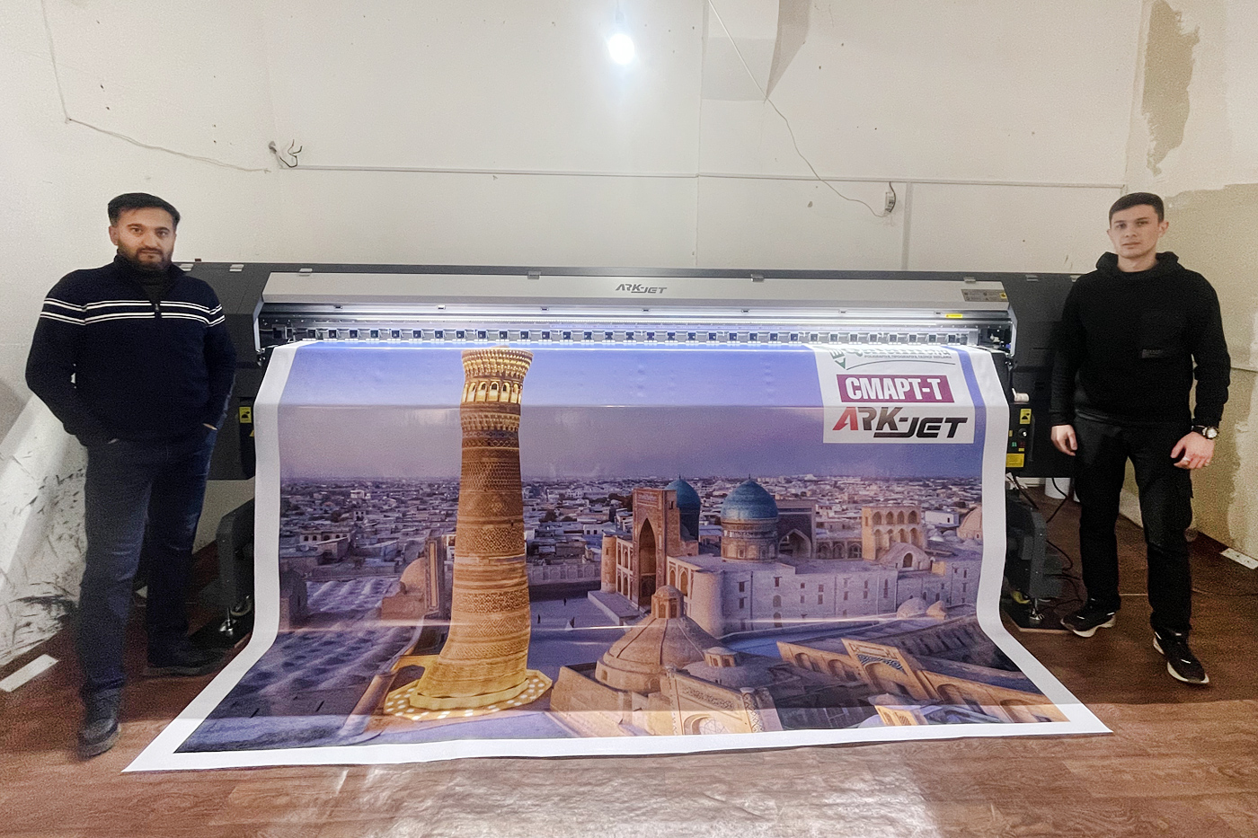 Наш инженер запустил трехметровый экосольвентник ARK-JET SOL 3202 в компании "Областная типография" в Бухаре. Это предприятие, созданное еще в 1970 году, сегодня оказывает услуги широкоформатной печати для интерьерной и наружной рекламы, фотопортретов и пр.