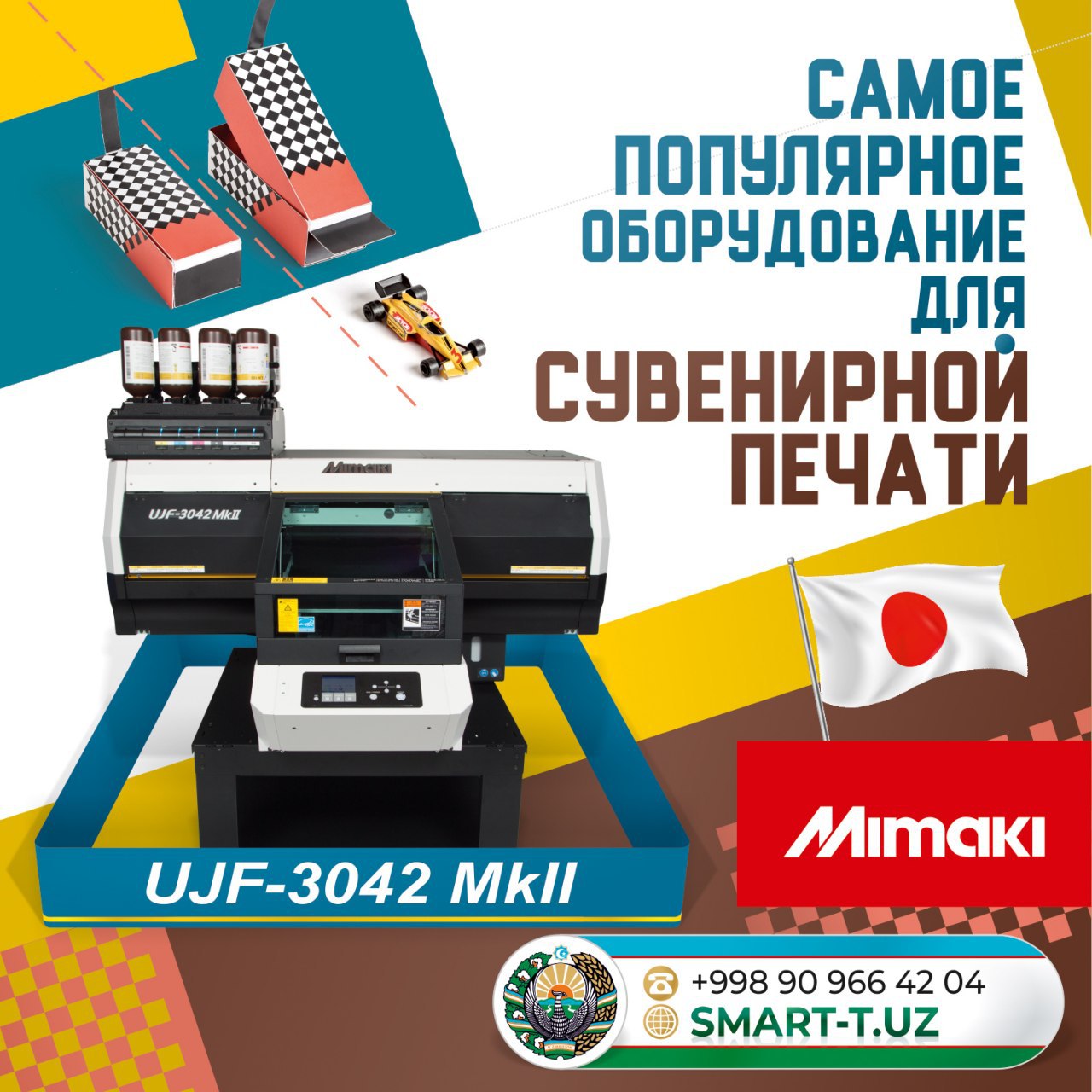 В офисе нашего ташкентского представительства, компании "SMART-T - ASIA", развернут самый популярный УФ-принтер для производства рекламно-сувенирной продукции. Mimaki UJF‑3042 MkII (пр-во Япония) - абсолютный лидер продаж в Европе и странах СНГ за последние три года.